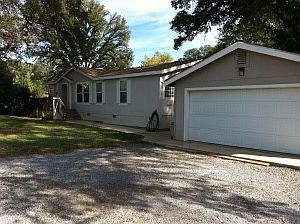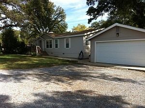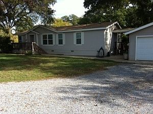 One full acre with a 2003 beautiful 3/2 manufactured home, w/detached 2 car garage. Flag lot off main highway gives it a very private and peaceful setting. Minutes from elementary, middle and high schools. Grocery shopping about a 1/4 mile away. Manufactured home is in excellent condition and is on a permanent foundation. One front porch and two back porches. All on flat usable acreage.