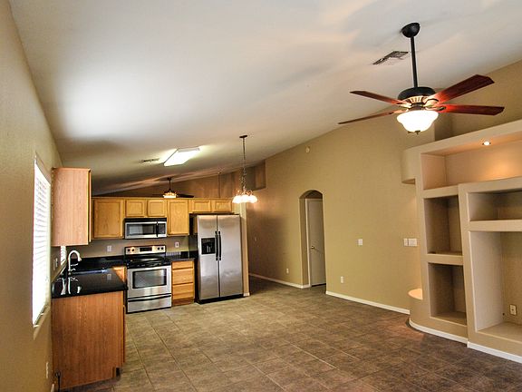 Remodeled & immaculate 4 bdrm 2 ba located at the end of cul de sac. This home features fresh 2 color neutral paint and wooden window blinds. All floors are tile flooring plus new wood-like tile in bedrooms. The kitchen features stainless steel appliances including built in microwave and double door refrigerator. The kitchen has upgraded granite counters and a handy pantry. Keep cool with new ceiling fans in every room, some with remote control. The home also features vaulted ceilings in the formal living room, great room and master bedroom. The home sports X-large back yard where there is only one adjacent neighbor. There is inside laundry room with cabinets and hookup for your washer and dryer. 2 car garage w/extra lighting & shelving. 1031 Exchange - Please use Stewart Title!