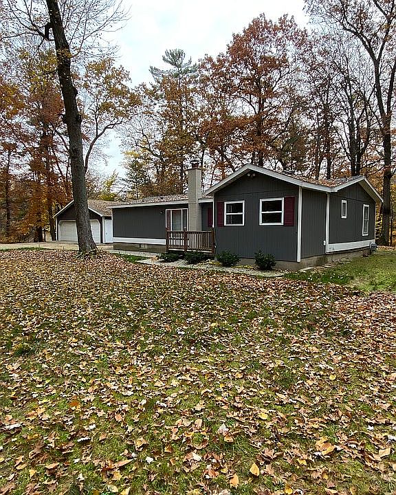 Updated manufactured on private 1.3 acre setting just a mile from 131 and just minutes from several golf courses and lakes. Large 32x32 pole barn with electric, cement floor and double openers. Home has new kitchen, updated electrical, fixtures, plumbing, paint, carpet and vinyl. Move in ready.