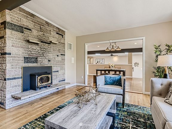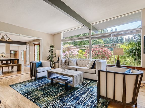 The mid-century modern single-story home you have been waiting for. High beamed ceilings, skylights and large windows bring in lots of light. Huge kitchen with custom cabinetry, pantry areas and large countertops provide plenty of storage and entertaining possibilities. Hardwood floors throughout with updated electrical and new water heater. Four bedrooms plus a bonus room for your private office space. Custom mature landscaping, rock trails, pergola, fruit tree, porch and deck spaces provide both beauty and privacy. Lots of off-street parking in the driveway along front and on the side for your RV and boat. Located on a quite dead-end street with easy access to Kenmore, Bothell, and Lake Forest Park amenities. Northshore school district.