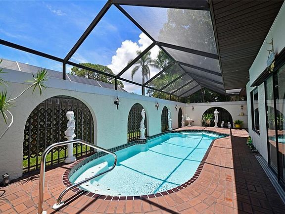 Situated on a culdesac in beautiful Palma Sola Bay Estates, this 3 bedroom/2 bathroom Spanish-style single family home is open and bright with over 2,250 sq ft under air. As you walk down the brick-paved path, enter into the spacious living room with wood burning fireplace, wet bar, and vaulted ceilings. Stay connected with your guests, as you cook in the open kitchen with ample eating space from the breakfast bar, dinette and additional formal dining room. The split bedroom plan provides privacy with the large master suite on the North side of the home boasting additional sitting room, Roman shower, jetted tub, and vanity in the bath. Sliding doors from the family room, dinette, Master, and guest bedroom provide access to the newly screened brick-paved lanai waiting for you to relax in your crystal clear, solar-heated in ground pool-resurfaced in 2017. New windows installed on North & South side of home, newer interior paint and carpets. Surrounded by mature tropical landscaping setting in the front and fenced backyard enjoy hosting your next cookout with family and friends on the outdoor patio. Approximately 5 short miles to the sugar sand beaches of Anna Maria Island! Enjoy the many wonderful natural walking/biking trails that Bradenton has to offer such as Palma Sola Botanical Park, GT Bray, Robinson and Neal Preserve. Golf at Pinebrook/Ironwood or become a member at the Bradenton Country Club. Fine Florida Living awaits! Check out the virtual tour for a 3-D walk through experience.