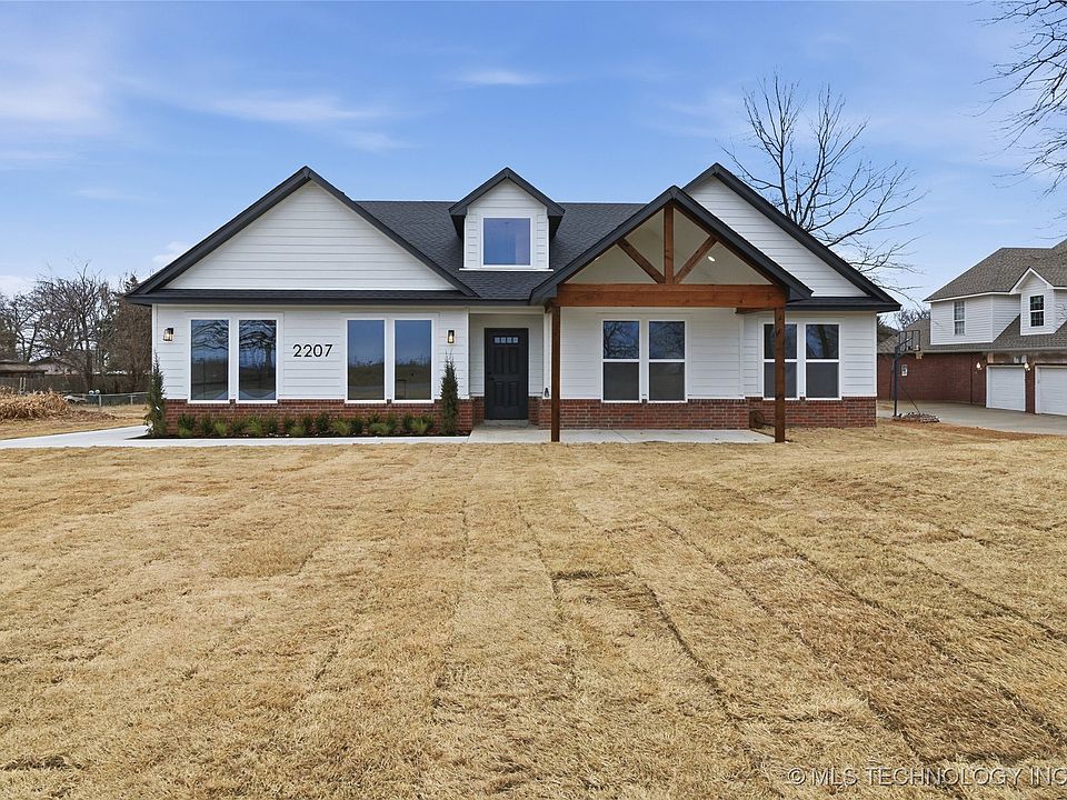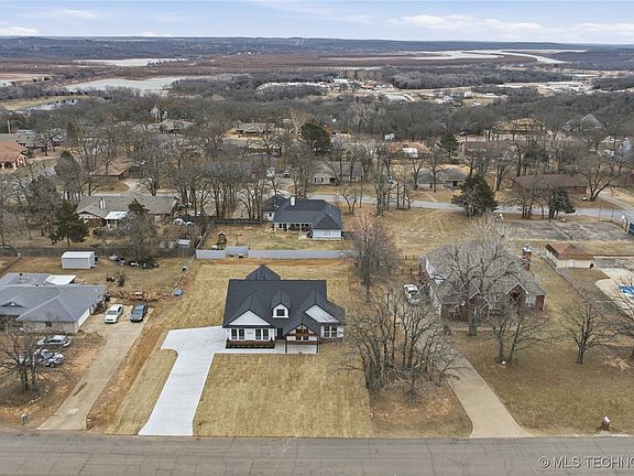chandelier - Soaring ceilings throughout: 12-foot ceilings in master suite & living room - 11-foot hallway ceilings - 9-foot ceilings throughout the remainder of the home - Open-concept living area with custom electric fireplace and granite surround - Kitchen highlights: Granite countertops - Large island with power outlets -Dishwasher in island - Master-king sink - Pantry - Private primary suite featuring: Custom tile walk-in shower - His-and-her sinks - Built-ins throughout the home - Custom bookcase - Floating shelves - Abundance of windows providing excellent natural light - Covered front porch and covered back patio. Located directly across from Keystone Golf & Country Club, Minutes from Lake Keystone, shopping, and dining.