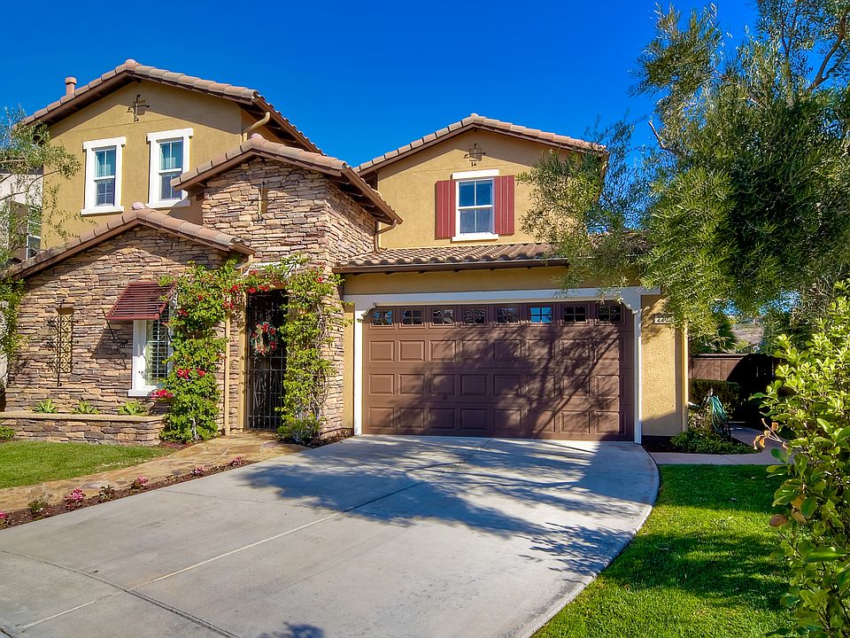 Seller will entertain offers between $1,049,000- $1,069,000. Beautiful La Costa Greens Isla Vista plan 1 home with oversized yard. Located at the end of a quiet cul-de-sac with 4 bedrooms, 4.5 baths and a large bonus room. The first floor master bedroom includes an attached office (bonus room) with separate entrance. Spacious backyard offers built in BBQ, fireplace, elevated planters, and numerous fruit trees plus room to add a pool. 1 laundry room up & 1 down! See floor plan in documents. Come enjoy the use of the La Costa Greens 'Presidio' facilities including swimming pool, fitness center, tennis courts and clubhouse.