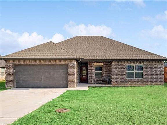 Charming single story ranch in Stagecoach Addition. This three bedroom, 2 bathroom home features and open concept floor plan perfect for entertaining. The kitchen features custom warm stained 42' cabinets, stainless steel appliances and tile backsplash. Family room complete with warm luxury wood vinyl flooring and stone tile surround fireplace. Spacious master with en-suit bath that includes dual sinks, custom cabinetry and walk-in tile shower. Two oversized bedrooms complete this charmer. Take the party outside to the big backyard with covered patio. All of this and within walking distance to Bridgeport High and easy access to 380 and 114.