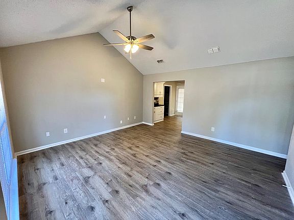 Fantastic newly refinished home ready for you to move in!! Fresh paint and new vinyl plank flooring throughout. Home features living room with vaulted ceilings, spacious kitchen with white cabinets, stainless steal appliances, and tiled backsplash. Eat-in-kitchen has built-ins. Large laundry room leads to the garage. Primary bedroom with full on suite bathroom. Exterior features privacy fenced backyard with a dreamy covered back patio and an extra parking space on the driveway. Seller is a licensed Realtor in GA.