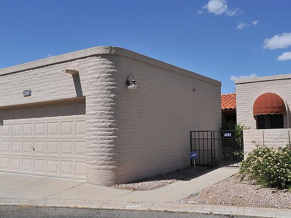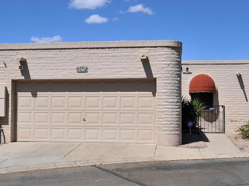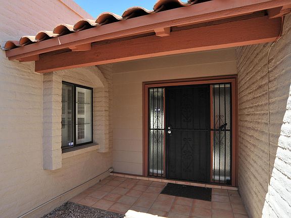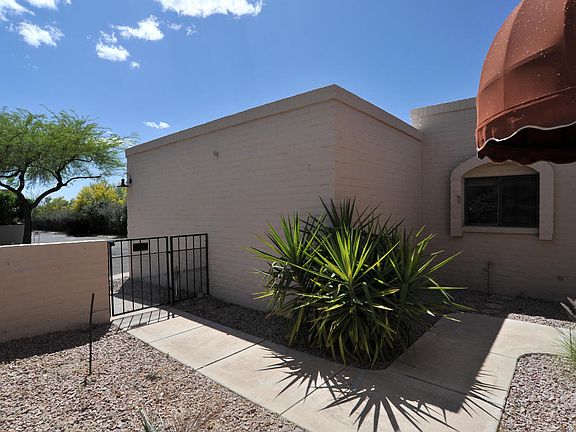 Highly desirable END UNIT in rarely available community. This hidden enclave has private access to the Rillito Riverwalk and is walking distance St Phillips Plaza & Trader Joe's. Excellent location near the Foothills and only 15-20 min drive to Banner/UMC/UA. Extra parking space next to the garage. HOA fee covers community pool, front landscaping, exterior maintenance (except roofs), roads, water/sewer & trash. The enclosed AZ room adds extra space but could be converted to an outdoor porch if desired. This is a highly desirable complex and location and this unit is priced to sell. Fireplace is not functional, conveys As-Is.