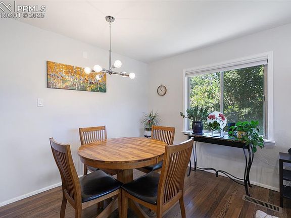 (Please look at video links located under the photos). This fabulous mid-century modern rancher has been recently remodeled and lovingly maintained. The newer kitchen features custom Plush Design cabinets, quartz countertops, tile backsplash and flooring, and newer Samsung stainless steel appliances. When entering the property, you will be impressed by the refinished original hardwood flooring in the living room, dining room, and bedrooms. The home also features newer landscaping, interior doors, door hardware, interior paint, newer furnace, air conditioning, water heater, electrical panel, wiring and light fixtures throughout. With main level living at its finest this 3 bedroom, 1 bath, 1 car garage home is a must see. Situated in an established neighborhood with Pikes Peak Views and close to Patty Jewett Golf Course, Nancy Lewis Park, Rock Island Trail, Palmer Park and a short drive to downtown Colorado Springs with its small-town feel with big-city amenities. This updated home is move in ready, clean and waiting for you!