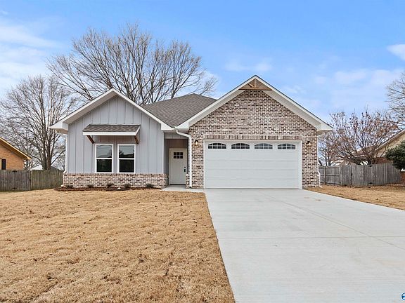 This elegant hardy & brick home is move in ready, offering 1,651 sq ft of refined space with 3 spacious bedrooms, 2 bathrooms, and a 2-car garage. Interior highlights include tray ceilings, built-ins, a cozy gas fireplace, and durable LVP flooring throughout. Custom accent walls and a charming tongue-and-groove porch ceiling add unique touches. This home also has a large fenced backyard & beautiful greenery, perfect for outdoor enjoyment.