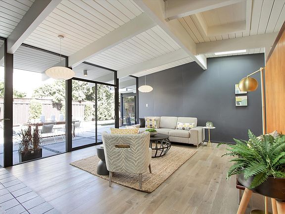 Beautifully remodeled & highly desirable two-story Eichler home in prime Triple El / Duveneck neighborhood. 5 b/3b 2,436 sf home on a 7,910 sf lot. Stunning living rm w/cathedral beamed ceilings, original Eichler corner brick fireplace, Mahogany accent wall, Nelson saucer lamps, skylights & floor to ceiling glass. Sleek remodeled kitchen w/ custom cabinetry, quartz, stainless appliances & breakfast bar. Tasteful formal dining area w/ modern globe chandelier, original Eichler concrete block & Mahogany paneling. Multi-Purpose family rm. Spacious master suite w/ floor to ceiling windows & sliding door to patio, walk-in closet, updated master bath w/custom vanity, fixtures and designer tiles. 3 large bedrooms upstairs & full bath w/ dual-sink vanity. 2 beds w/ access to 2nd story patio. Professional landscaped front, side & rear yards w/ lush lawn, raised flower beds, screens and a variety of plants/shrubs. Close shuttle/bus to Tech corridor Top PA schools, Duveneck Greene Middle & PA High