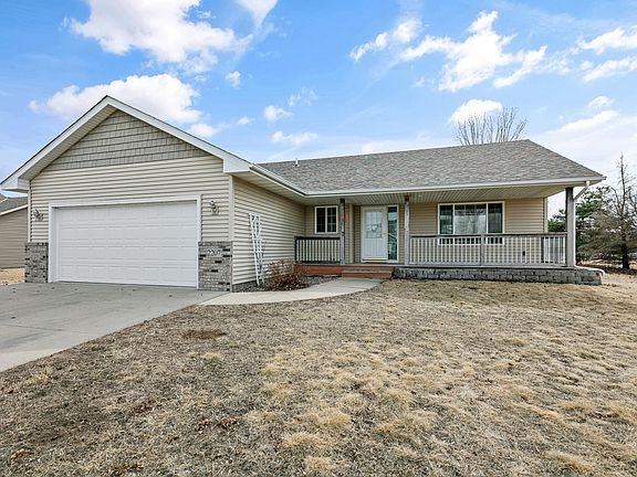 This charming rambler, built in 2006, offers a cozy and inviting atmosphere with plenty of potential. The home features a lovely front porch, perfect for relaxing and enjoying the peaceful surrounding of a small town neighborhood. At the back, a spacious deck awaits, ideal for outdoor gathering. Inside you'll find 2 comfortable bedrooms, 1st floor laundry, large living room. It does need some TLC to truly make it shine. Lower level is unfinished but the 1 room is finished but needs flooring.