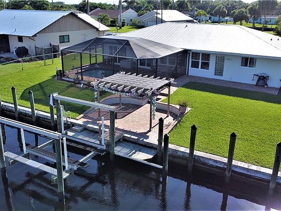 This home sits on a direct access sailboat canal. It has all the finishing touches completed for you. New kitchen with granite countertops, impact windows, heated salt water pool with cage. There is also tile through out along with modern update bathrooms. Don't forget the metal roof and sunroom off the master bedroom. There is also RV parking on the left side of the home. The boat lift is rated for 10k pounds. This is a wonderful home don't wait book a preview today.