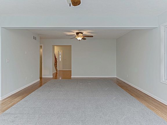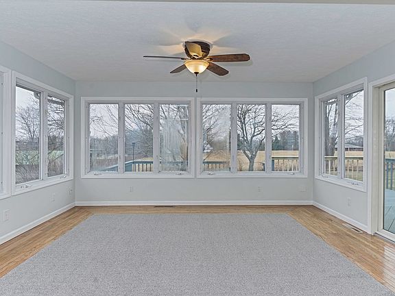 A taste of country in town with No backyard neighbors! Wonderful family home with a main floor master and an upstairs master too, makes a total of 4 large bedrooms. All New Carpet and interior paint in December 2020!! Kitchen has painted cabinets and a newer custom island, pantry and updated stainless appliances. AC replaced in 2018, Water Softener owned, Laundry in Lower Level, but a laundry chute makes it convenient!! Garages are attached with 2 at front of the home and one at the back side of the home. Hardwood floors in living room, dining and kitchen. Long windows in family room brings in lots of daylight! A large deck and a home for your family to grow up in!!