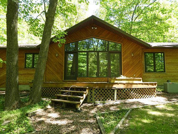 Now here's a beauty! Tucked in 18 acres of beautiful hardwoods w/winding drive from paved main road to a very special 2 bed, 3 bath home w/open floor plan! Corner gas fireplace w/heatilators. Bright rooms with cathedral ceiling & Pella windows. Lots of storage. Kitchen boasts wood cabinets & plenty of counter space. Enjoy the outdoors from a screened in porch or either of the 2 decks! Plenty of garages, 2 car attached plus other huge garages (24x32 & 32x34) for workshop, storage, etc. Newer roof & seamless gutters. Truly a gorgeous taste of heavens beauty just 5 minutes to Walmart & Home Depot