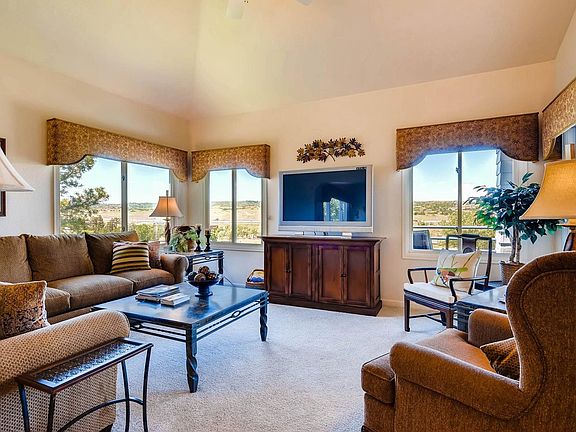 Pristine clean ranch townhome w/some updating overlooking Plum Creek Golf Course w/mountain views! Completely remodeled kitchen w/beautiful stone counter tops, lots of cabinetry & a warming drawer to keep food warm while finishing that wonderful dinner. Custom window coverings throughout the home to include plantation shutters in upstairs bedrooms and triple pleated energy efficient blinds on main floor. Large walkout basement with additional living space, bedroom and a huge amount of storage. Covered deck is slated to have flooring replaced with trex decking this coming winter.