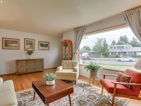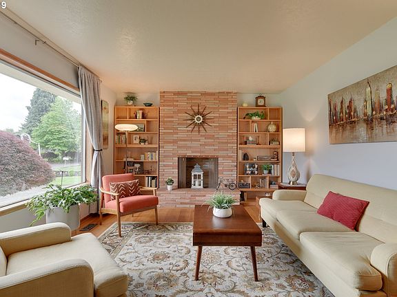 OH Sunday 11-1pm. Mid-century modern home in pristine condition. This home has it all. Huge picture window in living rooms looks out on perfectly manicured front lawn while insides boast hardwood floors, brick fireplace, tastefully updated kitchen with quartz counter tops, granite sink, tile backsplash. Basement has two additional non-conforming bedrooms, large laundry with extra storage space. Covered patio and backyard space. [Home Energy Score = 6. HES Report at https://rpt.greenbuildingregistry.com/hes/OR10139504]