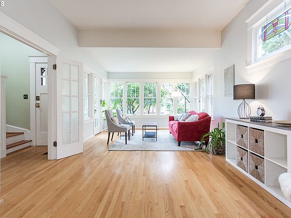 Irvington Victorian! Classic soaring ceilings, formal entry, box beams, hardwoods & open staircase. Light-drenched LR w/windows on 3 sides, DR w/charming corner FP. Spacious kitchen. Handy main flr office w/skylight. Roomy master w/walk-in closet. Remodeled basement w/family rm,playroom&full bath w/walk-in shower. Quiet street yet close to coffee, restaurants, streetcar&quick commute downtown. City living at its best! [Home Energy Score = 4. HES Report at https://api.greenbuildingregistry.com/report/pdf/R301168-20180321.pdf]