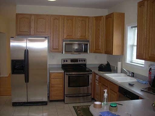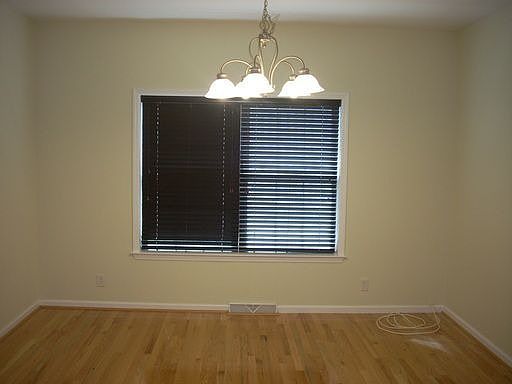 Enter the house off a small porch into a foyer withcoat closet and half bath. To the left of the foyer is the livingroom (14x12) with hardwood floors. Separate formal dining room(12x12) also with hardwood flooring. Large eat-in kitchen comesfully equipped with stainless steel appliance that include anelectric range, refrigerator with ice-maker, dishwasher, microwaveand garbage disposal along with lots of cabinet space. Lanudrycloset is off the kitchen along with access to the one-car garage.Stairs in the foyer lead up to the bedrooms. Master bedroom (16x15)is carpeted and includes a full bath with his/her sinks. Twoadditional bedrooms (14x10) (12x12) are also carpeted and share ahall bath. Carpeted den (10x8) is also located on the upper level.Unfinished basement has lots of storage area.
