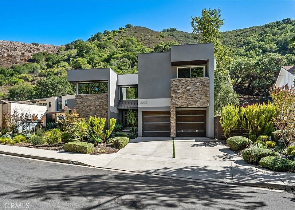 Come experience Modern Elegance in this Architectural Masterpiece where clean lines and expansive windows frame a breathtaking design. Custom built 4 bedroom, 3.5 bath home located in one of San Luis Obispo's most coveted neighborhoods! Step into this two-story retreat with unparalleled craftsmanship and luxury amenities throughout. You immediately walk in to high ceilings throughout and 22 foot vaulted ceilings in the living room. A culinary Kitchen awaits with premium finishes and fixtures featuring Thermador appliances, built-in panel front refrigerator and freezer, Caesarstone countertops and a large marble island. Built-in banquette seating around a Caesarstone table. Custom under-stair wine cellar with an extra large walk-in pantry off to the side prior to entering the kitchen. Primary suite is on the main level featuring a generous walk-in closet, seating area and ensuite with double sinks, oversized walk-in shower and soaking tub. A vacuum elevator sits off to the side of the entry of the home for easy access to the upstairs. The office is highlighted by oversized premium sound reducing windows and insulation, with tons of natural light. Bonus is a 507 sq. ft. room which can be used as a bedroom/TV room/Bonus-play room with brand new custom wood flooring. Experience the ultimate in outdoor living with native drought resistant plants, 10-person bubbling spa, and gas grill; a personal wellness retreat! Additional highlights include fresh Epoxy flooring in the garage, Tesla backup battery, fully paid solar panels and a whole house water filtration system. Just minutes from downtown SLO, shopping and dining, schools and parks. Come see one of the most sought after streets in town!