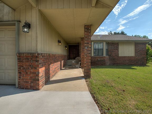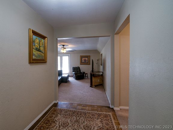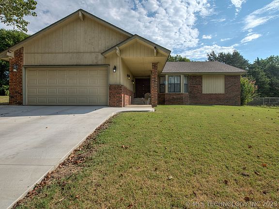 Spacious 3 or 4 bed/2 bath home with 2 car garage in Quail Meadows addition. Flex room off of entry could be home office or hobby room. Step down into the great room that adjoins formal dining. Galley kitchen with eat-in breakfast nook with new electric range. Master bedroom is on back of home with dressing area and walk in closet. French doors in bedroom for access to back yard patio. Hall bath has been updated with soaker tub and custom tile surround. Master bedroom has patio doors to backyard and spacious bathroom with shower. New driveway and patio in back. Oversized storage building. Okmulgee or Morris Schools, it's your choice. Just minutes from OSUIT & US 75 off Loop 56.