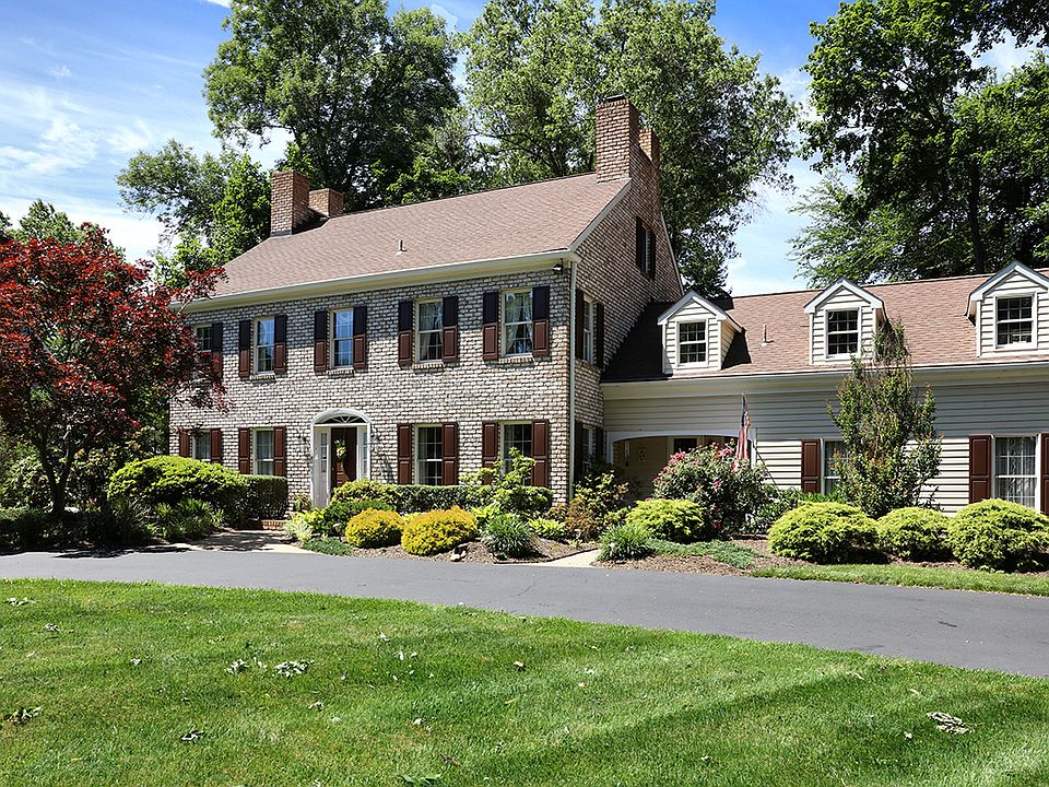This custom-built executive home within charming Westover sits on a large park-like lot with in-ground pool & tremendous upgrades throughout. A classic all-brick Georgian colonial welcomes you into the spacious formal Foyer complete with oak staircase & hardwood flooring which flows into the Living, Dining & Family Rms. The 20' Living Room boasts crown molding, custom valences & double windows. The banquet-sized Dining Rm has crown molding, chair railing, wainscoting & double windows overlooking the garden. A spacious step-down 20' Family Rm has terrific accents including an open beamed ceiling, brick fireplace with built-in wood storage & double windows. A Library has double windows & great views. The Kitchen, with neutral tile floor, has abundant raised panel wood cabinetry, recessed lighting, sub-zero & island opening to huge eating area with sliding glass doors to the rear grounds. A cool spiral staircase leads to the Main Bedrm Suite from this space. You'll also find a Powder Rm, Laundry Rm & 2 car Garage on the Main Level. Take the solid oak staircase to the Upper Level leading to 5 Bedrooms & 2 full Baths. The massive Main Bedrm Suite encompasses a 3 rooms + Bath. The sleeping rm has walls of closets, the neutral en-suite Bath has a long white vanity & separate shower, an Office/Den with vaulted ceilings, spiral staircase, recessed lighting & ceiling fan/light, plus a Second Office/Study lined with walls of bookcases & a skylight. The Secondary Bedrooms are all great sizes- with ample closet space, multiple windows & neutral carpeting. A renovated Hall Bath has antiqued wood vanity & storage cabinet, modern lighting, neutral flooring & shower/tub combo. Follow the full staircase up to the Attic, which has tons of rooms for storage & great ceiling heights for future finishing. The huge Basement has an outside entrance, tall ceilings & offers more storage space than one could need. Outside, you'll spend hours entertaining on the paver patio while enjoying the tall trees & rolling lawns. Towards the corner of the yard sits a sparkling in-ground pool with abundant concrete decking. Notable features also inc: 4-zone heat, 2 new HVAC units, new heater chimney, Anderson triple pane windows & new sliding glass door to the patio, central vac, Laundry chute, 2 yr old whole house generator, 2 yr old pool filter, outside lighting, lightening rod, steel doors, artesian well & more. Pennsbury Schools, close to shopping, trains & major arteries.