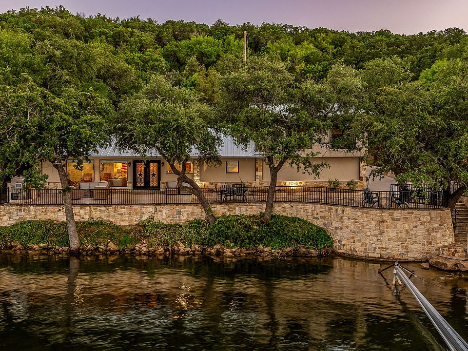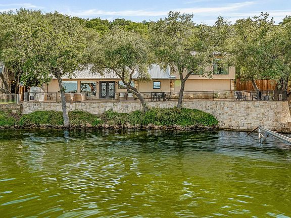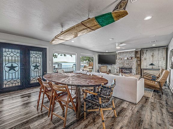 This spacious lake front property in the highly sought after peninsula on PK Lake, provides a tranquil retreat in any season! This gorgeous two-story waterfront retreat features a recently updated deepwater dock with 2 boat slips complete with hydrologist boat lifts and PWC dock. Just miles from Rocker B Ranch, this stunning completely updated home can accommodate up to 20 at one time. Ideal configuration for both short-term rentals and family escapes. Enjoy summers swinging from the top of the 2 story dock, fishing off the gangway, or swimming in the quiet waters. Only a short boat ride from the fun at Hell’s gate, or for the scenic views of The Cliffs. In the winter, the views are just as nice, and dinners on the patio from the outdoor kitchen are hard to beat. Memories can be made nestled around the fire pit telling stories, making s’mores and enjoying the starry nights. The four bedroom, two bath home has beautiful views of the lake that can be enjoyed from the fenced back patio or from the floor to ceiling windows of the living room. The home was recently renovated and decorated by the extraordinary Homestyle Collective design team. Offered fully furnished, this property provides a seamless transition into lakeside living or a thriving STR business.