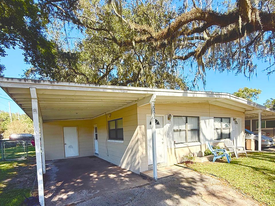 Mid-Century Modern, 1/2 Duplex in the heart of the very trendy Hourglass district! Bright and sunny, 2-bedroom, 1 bath, unit has vaulted ceilings, original deep green terrazzo floors, and built-in details. The updated kitchen has stainless steel appliances and a door that leads to the large fenced backyard. Each bedroom has high ceilings and they share a hall bathroom. Other features include a one-car, carport with driveway parking, a full-sized washer/ dryer with storage space, a large corner lot has mature shade trees, a fenced backyard, and a firepit and butterfly garden. Located in the Hourglass District, you can walk to Foxtail Coffee, great bars and restaurants, shops, local farmers markets, street parties, and food truck round-ups. Minutes to Downtown Orlando, ORMC, Winnie Palmer Hospital, Advent Health, Dr. Phillips Arts Center, The Kia Center, Orlando City Soccer Club. Just a short trip to Orlando International Airport, Walt Disney World, Universal Studios and all of the fun that Orlando has to offer!