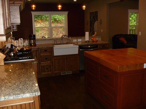 Beautiful home on acreage with a 2 bd/1 bath mother-in-law apt. Kitchen has top of the line cabinets, granite countertops, walk in pantry, & a 4" butcher block island. Flooring is hand scraped white oak. Living room has gas fireplace. Covered deck allows views over the valley. Master has lg. tiled shower, tub, two sinks. Rec rm has a wet bar & fireplace. Beauty salon off garage. On demand hot water. Tenant pays $1050/month and is willing to stay on. Wine cellar. 24 x 30 shop plus barn.