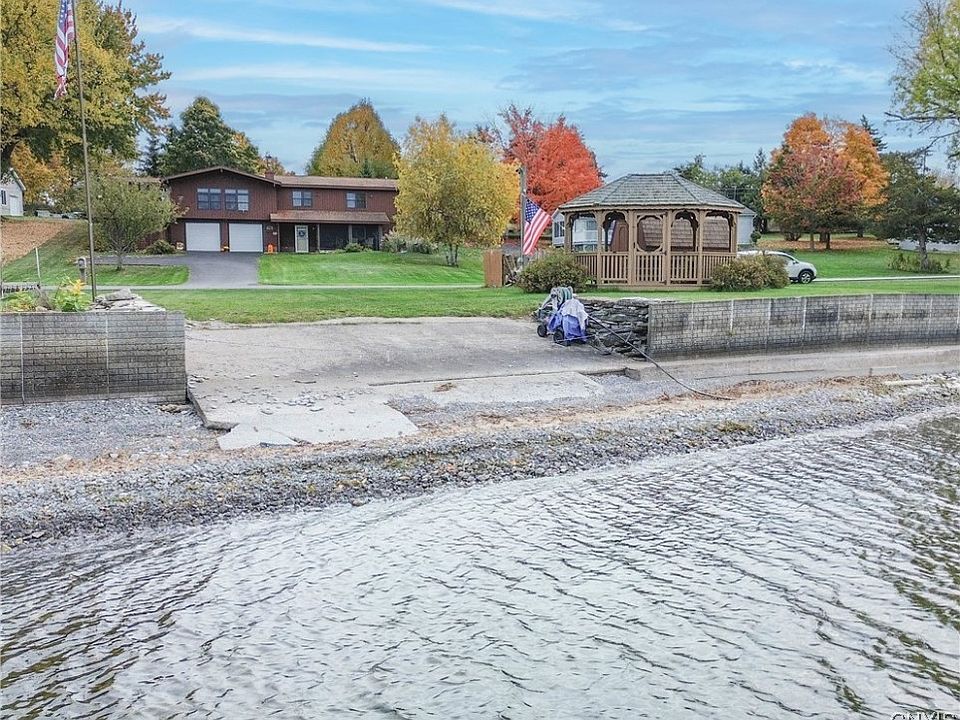 Check out this fabulous late season Lakefront special boasting so much at a great price!!! Awesome 4 season 4 bedroom, 3.5 Bath home with over 2000SF of living space, light and bright cheery kitchen with island, large living room with wood Fireplace that helps heat the house, sunporch dining area with large deck out front and stunning lake views! 3 Bedrooms and 2 baths on the main floor PLUS 4th bedroom/En-suite with 1/2 bath on first floor with entry from garage and nice mudroom entry area! Beautiful back yard all fenced with covered porch area, wood storage, front screened porch and across the road there is a gazebo, shed, boat launch and 88' of pristine lakefront perfect for swimming, boating, fishing and so much more! Home heats with Wood and a LP Rinnai and backup electric in ceiling. This is truly an amazing find and ready for year-round lake fun! Don't miss out on this one!!!