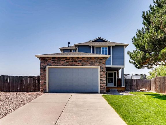 Gorgeous two story home in the desirable Cherry Creek 5 School District! Amazing panoramic views of the mountains from Longs Peak all the way to Pikes Peak. This spacious 5 bedroom 4 bathroom home has been meticulously maintained. The kitchen has upgraded stainless steel appliances, granite tile counter tops and hardwood floors. New carpet throughout. Large great room on main floor. The upper level has a master suite with a newly remodeled master bath with built in bluetooth speaker. Two more bedrooms with Jack & Jill bath. Custom pantry and custom closets on upper level. Finished basement with 2 bedrooms and large 3/4 bath. New roof, new furnace, and new hot water heater in 2013. New outside paint in 2016. Huge yard with concrete patio, stone and sprinkler system. On cul-de-sac.