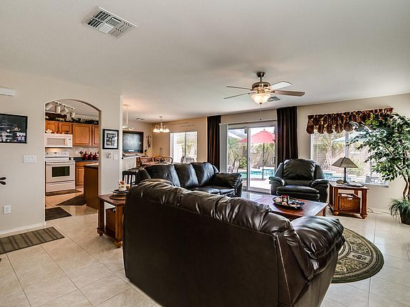 Location, Location, Location! This home has one of the best mountain views and locations in the Sundance subdivision. This lovely home has 4 bedrooms, one downstairs and 3 full bathrooms, tile throughout the downstairs, carpet upstairs, nice size kitchen lots of cabinet and counter top space, back splash and newer appliances. High rise bar area, eat in kitchen over looks great room and gorgeous backyard pool and patio area. This backyard was made for entertaining. Upstairs you have 3 bedrooms and a large loft area. Many extras including; epoxy flooring in garage, built in garage cabinets,nd work area, large laundry room downstairs, exterior of home was painted March 2015, updated lighting, ceilings fans,curtains, and much more. House has been meticulously maintained and won''t last long