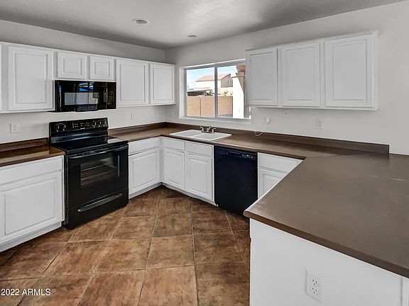 Your dream home is waiting just for you in Buckeye! The kitchen boasts generous counter space and a breakfast bar, making cooking and entertaining a delight. Discover a bright interior with neutral tile floors and plush carpet in all the right places. Backyard landscaping upgraded in November 2022. Relax in your primary suite, complete with a walk-in closet, and an en-suite bathroom with double sinks. Entertain on the covered back patio, perfect for barbecues. Don't miss this incredible opportunity.