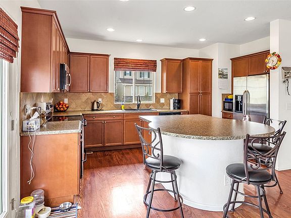 This Beautiful Home is move-in-ready and waiting for you. You will be welcomed by traditional hardwood floors throughout the main floor, has a wonderful wrap around porch, 2 car oversized (wide) garage, nice large kitchen with island, stainless steel appliances, eating space that opens into your family room and a large concrete patio out back for all your entertaining. The professionally finished basement has a large bedroom and full bath, and a flex room perfect for gaming or watching your favorite movie. Although the front of the home faces east, the driveway has a southern exposure. Has a NEW Roof! Award Winning Cherry Creek School District, Southlands Shopping and Restaurants plus very convenient access to DIA and Denver Tech Center. The Copperleaf community has 2 pools, clubhouse, parks & trails. They have events throughout the year, they include a food truck on Tuesdays, Summer Jams, Holiday Parties, Adult Socials, & much more! Welcome to your new home in Copperleaf!