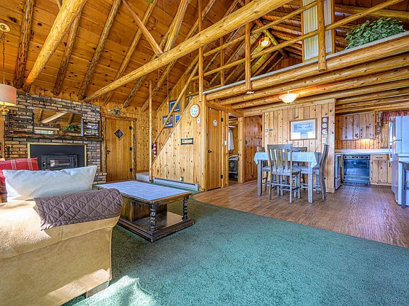 Enjoy TWO lakes with this property! Approximately 80' of shoreline on Lake Stella. This property is a split parcel and also has area across the road on Lake Washington with 79' of additional shoreline. Both docks are included! Main level features pine walls and a vaulted ceiling with logs. There is a spacious open loft that looks out to the lake.