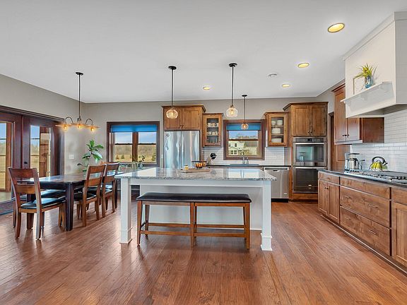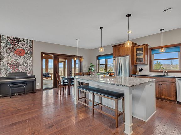 This beautiful two-story home in the popular Eagles Landing neighborhood of St Augusta offers an ideal layout with 4 upper BRs plus a bonus room perfect for a study, hang-out area or another BR. The owner’s suite features 2 walk-in closets, a soaking tub and a tile shower. The laundry is also upstairs. The main floor has an open great room with a large kitchen boasting an enormous central island. It offers granite tops, subway tile backsplash, double ovens, 36-inch gas cooktop and a pantry. The living room has new flooring, and a gas fireplace. The spacious dining area leads out to a screened porch and the almost 2 acre yard. There is a great mudroom and drop zone off of the garage, and a main floor den. The basement has a family room with a spot for a future bedroom, and a wet bar. The outside offers fruit trees, native prairie grass and beautiful sunsets. You will love the Eagles Landing community pool, clubhouse and sledding hill.