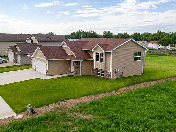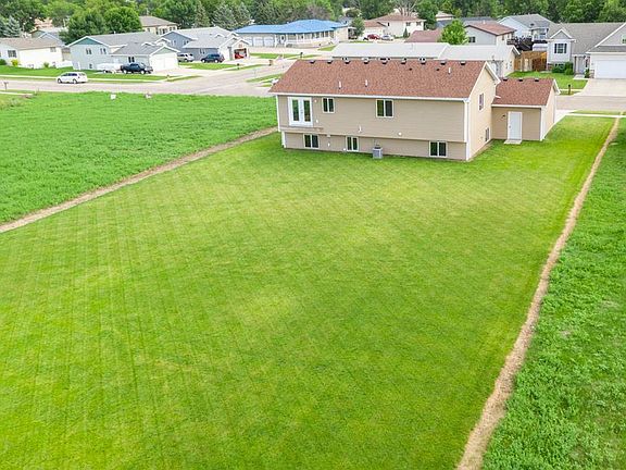 Come see this quality 4 bedroom, 3 bathroom, 3 car garage home built by Hunter James! This stunning two-story home on a large lot (with another lot for sale next door) in a GREAT neighborhood will give you 2,458 sq ft of generous space. From the open-concept kitchen and living space to the large manicured backyard (with a newly installed sprinkler system), there is plenty of room for the whole family to enjoy. Upstairs you will find a kitchen with hardwood floors, custom oak cabinets, an expansive island, and a corner pantry, along with black appliances including an oven, fridge and dishwasher. The hardwood floors carry over into the open-concept dining room which is open to the large living room with comfy carpeting and beautiful natural light. Upstairs you will also find a large master bedroom with a walk-in closet and en-suite bath with custom oak vanities. Rounding out the main floor is a nice-sized second bedroom and a bath with a custom oak vanity. Heading downstairs you will find a daylight basement with a huge family room lit with multiple windows and recessed lighting. Downstairs also is home to the utility and laundry room, two more nice-sized bedrooms, a bathroom with a custom oak vanity and under stairwell storage. The home remains comfortable even in the ND dry winter air thanks to a furnace humidifier. The sellers have also upgraded the window coverings to blackout, energy-efficient blinds. This beautiful home is situated in a family-friendly neighborhood near a great school... it is sure to go fast!