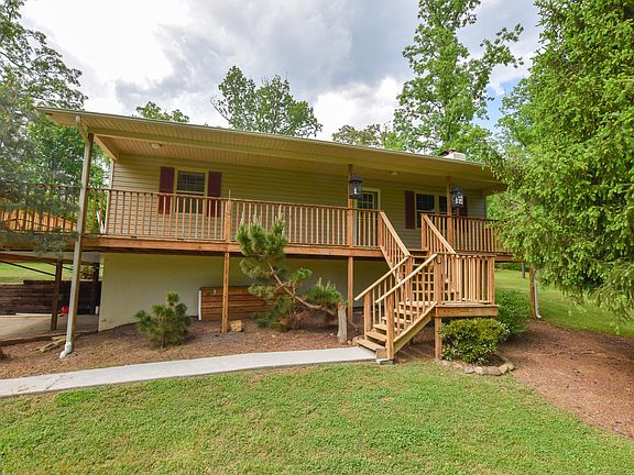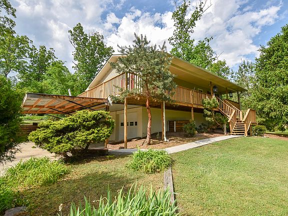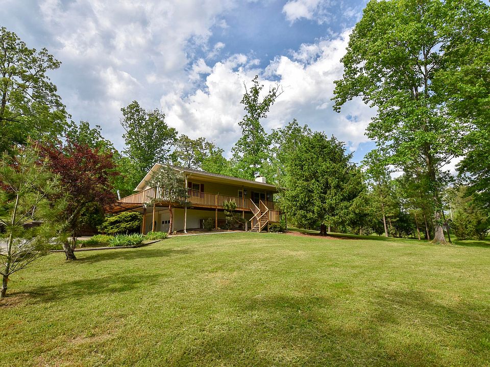 This is your chance to own a piece of serene acreage just minutes from Holston Hills Country Club and golf course, and north of Ijams and Forks of the River Wildlife Area. The front deck spans the length of the house and wraps around the side to give you amazing views of the gentle sloping hills, mature trees, and creek that runs across the property. The home features a large two car garage with space for additional storage and a workshop, a master suite with two closets and an ensuite bathroom, ceiling fans in both bedrooms, hardwoods throughout the living space, and an open floor plan takes you from the living room into the kitchen. A custom wood mantle above the stone fireplace is the focal point of the living room. The outdoor space doesn't end with the front porch, you'll also enjoy a