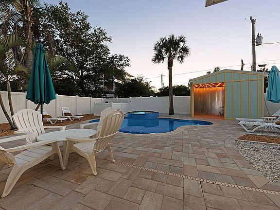 Single Family Home, open floor plan, 3 Bedrooms, 2 Full Baths, Enclosed Porch. Laundry Room, Pool and Spa with Cabana. Newly remodeled kitchen and bathrooms. New hurricane windows and doors throughout house. Metal roof.