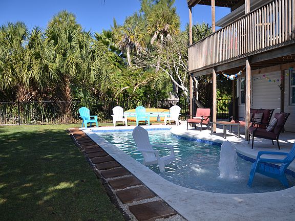 Anna Maria Island is Florida's best kept secret: beautiful white beaches, older Florida charm, award winning restaurants, golf courses, and pristine shopping all within easy walking and driving distance, or jump aboard the free 'Anna Maria Island Trolley', which stops 60 steps from the backyard. The beach is white sugar sand and 7 miles long. The area is known for its splendid sunsets. Spend the day on the beach, which is a simple 1-minute, 60-step walk from the back yard of Gulf-View Retreat, or hang out fishing in one of the many great spots nearby or in a boat on the Gulf of Mexico. After enjoying the beach, you can use two outdoor showers next to the pool to wipe the beach sand off before getting in the pool. Kick your feet in the water in the new heated swimming pool with a special sun shelf for toddlers or adults to sit on with Adirondack-style chairs including nice tile siding and multiple sitting shelves. If you're in the mood to tour around the rest of the island, catch the free trolley out the back door and it will take you to any of the beaches, restaurants, shops or grocery stores along Gulf Drive anywhere on Anna Maria Island. Take the trolley one stop down (or stroll along the beach the one mile) to the old historic Bridge Street area of Bradenton Beach to enjoy the Key West style restaurants and shops. If you enjoy painting or photography, the sunsets are among the best in the world. The new swimming pool includes a large sun shelf where you can place the plastic Adirondack-style chairs and kick your feet around in the water is about 6-8 inches deep. The sun shelf also includes a fountain that is adjustable from a low gurgle to 5 feet high. Then the pool has a sitting shelf around 18 inches deep. The rest of the pool is about 3 to 5.5 feet deep. The pool includes two more sitting shelf's on the far end that are around 18 inches deep. One of those extra sitting shelf's on the far end has a soaker spout to massage bad backs. The new pool includes lots of deck, yard area, and landscaping to sit around and watch kids play in the pool. The Gulf-View Retreat (2nd Floor) and Pool-Side Retreat (1st Floor) offers everything you need for your beach stay! Beach toys for the kids are available in our outdoor shed. Dishes, pots, pans, linens and towels are all provided - just bring your swimsuit and enjoy! The Gulf-View Retreat and Pool-Side Retreat both feature a split plan with the master bedroom having it's own bathroom and on the other two queen-size bedrooms sharing one bath. There is an additional pull out sofa bed in the family room. Granite countertops throughout the unit provide luxury at your fingertips. Other amenities to perfect your stay include: Open decks with Gulf of Mexico views New Pool with large Sun Shelf and many Sitting Shelf's Fire Pit Kayak Paddle Board Big Yard Crows Nest third-floor balcony makes enjoying the sunsets and night-time stars an incredible experience Wireless Internet service with 15MB per second high speeds Cable on the high definition flat screen TV New Trane air conditioning unit The second floor Gulf-View Retreat can be rented at http://www.vrbo.com/557191 while the first floor can be rented separately through the Pool-Side Retreat listing (http://www.vrbo.com/614098 or vrbo #614098). Each floor is a completely self-sustaining, independent unit with its own BBQ, patio furniture and entry way. Both floors can be combined for family reunions, retreats or multiple family vacations if you contact us.