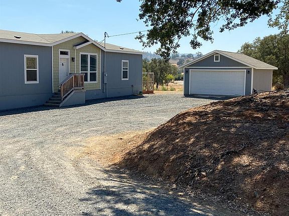 Country living at it's best. Home sets on 4.8 useable acres with Black Creek at the rear of the property. Lots of space for packing your RV and other toys. No water bills the property has a well that pumps 12-14 gpm. The well is 700 feet deep. The septic system, well and home are approximately 3 years old. The detached 2 car garage was built by Tough Sheds. Home has an open floor plan, bedrooms at opposite ends, large kitchen with lots of storage and a large pantry, inside laundry room with door leading to the outside. Natural landscaping with lots of trees and room for horses. The property is located only a couple of hours from Yosemite National Park, Bear Valley, Wine tasting, and the bay area. Community offers lots of activities, lots of shops, family medical clinic is located at the Town Square. With this property you have the use of Beautiful Lake Tulloch which has 55 miles of shoreline, BBQ areas, parks, boat launch, day docks, Kiva that has covered area for picnicking, gym and trails. This property has so many possibilities. Take a drive and check out this wonderful piece of property you will not be sorry you did.