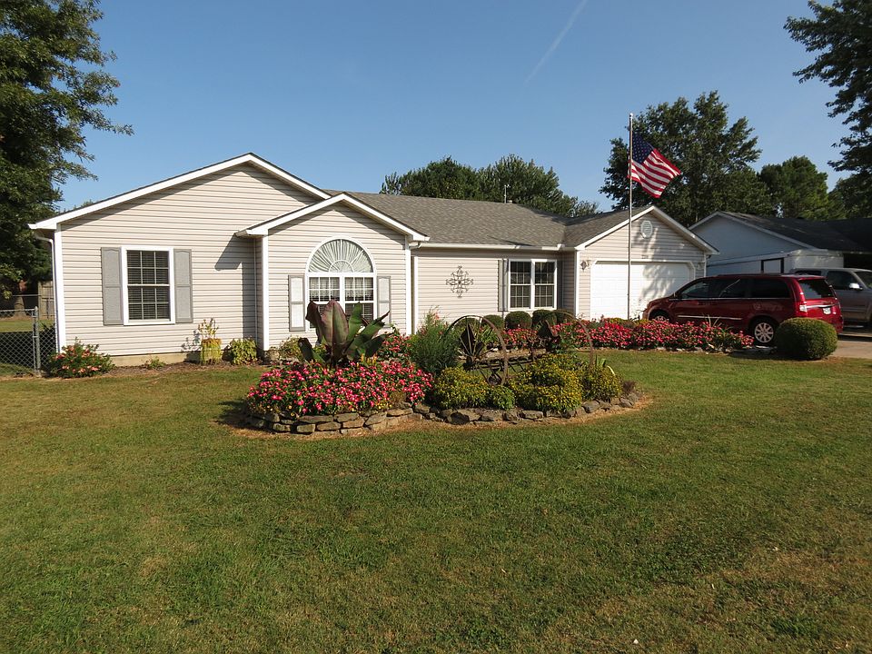 Exceptionally maintained and spacious, this corner lot home has a larger yard, with fencing and a like-new feeling when you step inside! The carpets are in great condition, and the tile and laminate (in the entry) are gorgeous! A corner gas log fireplace for those chilly nights, and the fourth bedroom is currently used as an office but don't be surprised - the closet is actually designed to look like a tackle/bait shop! Easily converted to a traditional bedroom by removing the cosmetics, the closet is still large and functional! The kitchen is spacious and open to the living room with a nice bar and eat-in dining. There's ample cabinet space and the counter tops are in great condition. Lots of trim and a very comfortable layout. The house is not in a traditional POA subdivision- you don't have POA restrictions, yet the neighborhood is inviting. Close to schools and shopping, and Pea Ridge is only a 10 minute drive from the interstate! Great for commuting with top ranked school district. Park is very nearby!