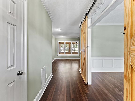 Beautiful all-brick one-story home situated on a private wooded .41-acre lot that backs to private lot adjacent to the golf course! You are led by a long driveway to a private oasis when approaching this beautiful home. As you enter, custom barn doors separate living spaces to offer privacy to the master suite and dining areas. Newer LVP floors were added 2 years ago. 3 season room was finished with beautiful wood planking on walls and large windows to enjoy the privacy of the backyard. The owner also added a new vapor barrier and dehumidifier to the crawlspace. There are so many possibilities for you to put your final touches and make it your own. Don't miss out on this great opportunity!