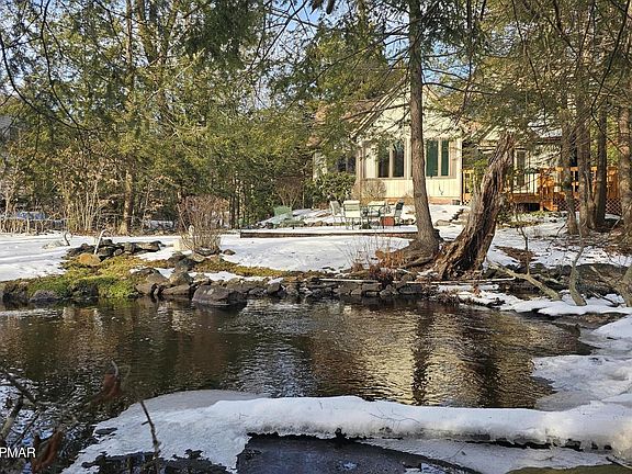 Waterfront Home on Major Feeder Creek Supplying Water to 277 Acre Lake Naomi Protected by Large Green Space Making for One of the Most Private and Beautiful Settings in the Premier Lake Naomi Community! 3 Bedroom 2.5 Bath Home with Great Architectural Features. 270 Degree Water Views in 4 Season Room, Wood Burning FP, Decks Front and Back Provide Great Entertainment Spaces. Large 1st Floor Master Suite Bedroom with Full Bath , W-I Closet & Sliders to Deck Allows for Single Floor Living! Oversize 2 Car Garage. 2nd Floor Offers 2 Bedrooms, a Full Bath, and a Bonus Room which can be used to Create a 2nd Master Suite, Family or Game Room. 4 Beaches, World Class Pools Indoor & Outdoor,Tennis & PickleBall, Sailing,Clubhouse , Lakefront Dining, Sailing, Fitness Center, Golf ,Teen Activities
