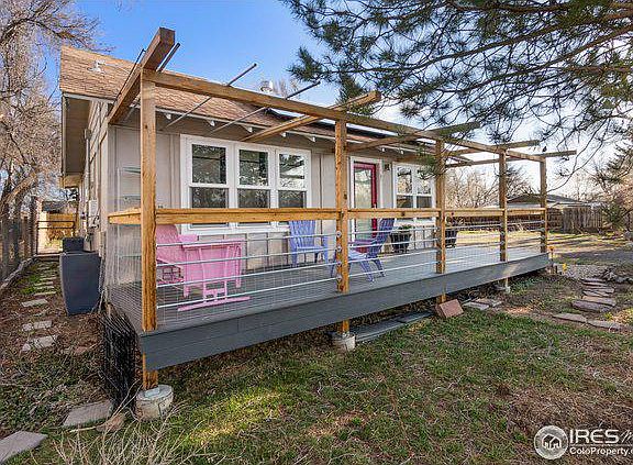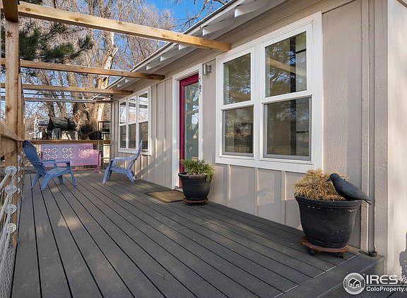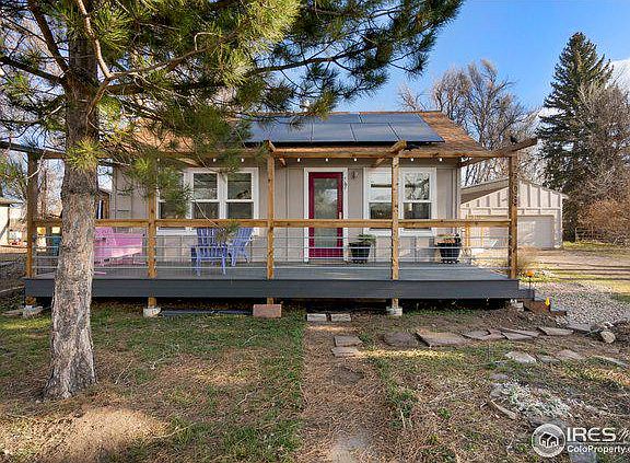 Picture perfect in every way this home is bathed in sunlight & charm! A unique & cozy floor plan offers a sophisticated interior. 2 bedrooms & 2 baths, spacious living rm, dining room opens to kitchen & amazing outdoor spaces. Updates throughout include 2 gas fireplaces that provide heat for the home, lovely hardwood floors, updated kitchen w/ custom balsamic birch plywood counters, fresh paint, all appliances included, new composite deck, owned solar panels, vinyl windows, new garage door & more. Sited on a 10395 s.f. lot w/ 2 car detached garage. Walk/bike to City Park, Stodgy Brewing Company, Poudre HS or minutes to the vibrant Old Town FTC as well as the gorgeous foothills with hiking & biking trails. Room for your boat/RV & toys.