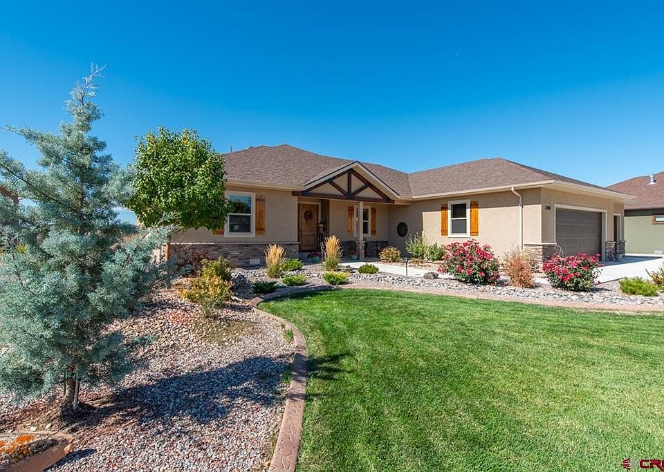 This type of property offers a spacious living space on a premium .42 ac lot, ideal for those who appreciate the views of the Uncompahgre mountains and outdoor activities with The Bridges golf course out your back door adjacent to the 4th hole. The large covered patio and custom electric solar patio shades make outdoor living more comfortable in the evenings while entertaining or just enjoying the gorgeous sunsets. The absence of an HOA can provide more flexibility and freedom for homeowners to make changes to the property without restrictions imposed by an association. A Social or Golf membership to The Bridges may be purchased but not required. You will be impressed with the “still new feel” and quality craftsmanship throughout this custom built Coker Home. From the Living Rm, Dining Rm, Great Rm, Primary Bedroom or 2nd bedroom the views out of the strategically placed windows will have you feeling like you are exactly where you need to be. The home features custom crafted Amish cabinets and 8’ doors throughout. Fabulous layout featuring an open concept living area, large island in the kitchen complimented with granite and stainless appliances. The back yard is fenced and has a large shed which gives plenty of room for a hobby room or garden equipment.