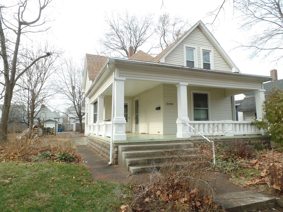Dining room, living room, bedroom, large kitchen, laundry/family room and a full bathroom all on first floor. Three bedrooms and a full bathroom on second floor. Two car unattached garage with alley access. Recently new roof, siding and gas water heater. Late model gas furnace. Large refrigerator and gas stove included with house.