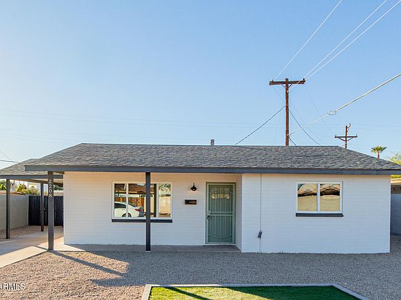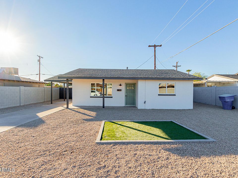 COMPLETELY REMODELED! Why wait when you can move right into this charming home in a great Phoenix location! Displaying a carport parking, RV gate, & a low-care front yard w/artificial turf. The highly updated boasts clean lines that promote a modern feel! Enhanced by abundant natural light, fresh neutral paint, new ceiling fans in every room, and new wood-look tile floor in common areas. You'll LOVE the desirable great room for everyday living & entertaining! The renewed kitchen features SS gas range & dishwasher, range hood, quartz counters, recessed lighting, white shaker cabinetry, and a 2-tier island w/breakfast bar. New carpet adds comfort to the bedrooms, while the upgraded bathroom has a shower & tub combo. Unlimited landscaping potential can be explored out the back! Welcome home!