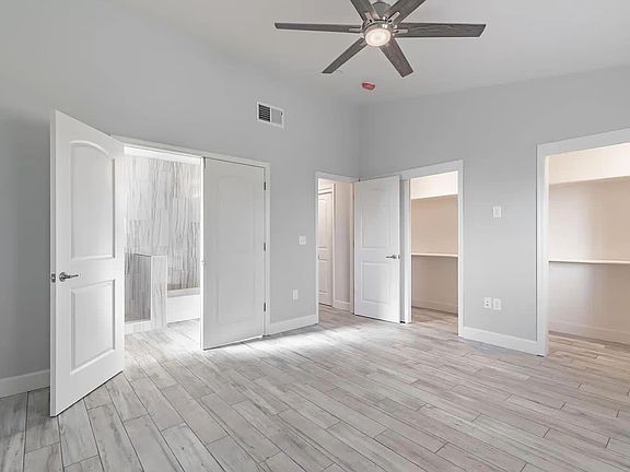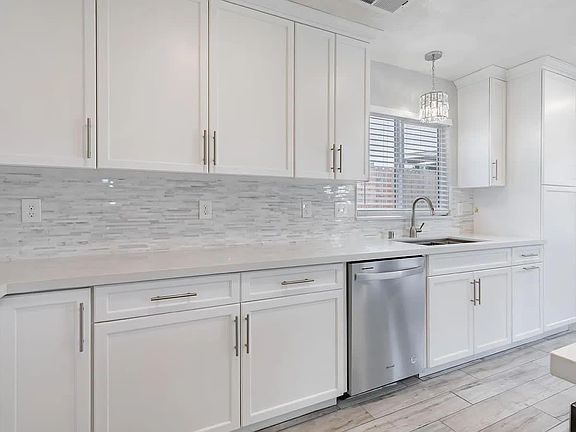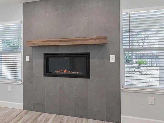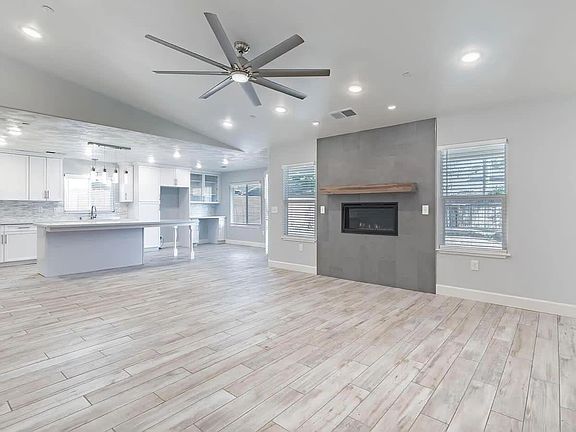 3 bd2 ba. 1385 sqft Enjoy the ambiance of the wall fireplace in the great room that is open to the kitchen. The spacious kitchen has quartz counters with a custom island , a large sink, an expansive amount of cabinets, a built in tech center or computing desk, complete with a very nice upgraded stainless appliance package. In the master suite you will love the details of the master bath. And the walk -in / walk- through master closet!