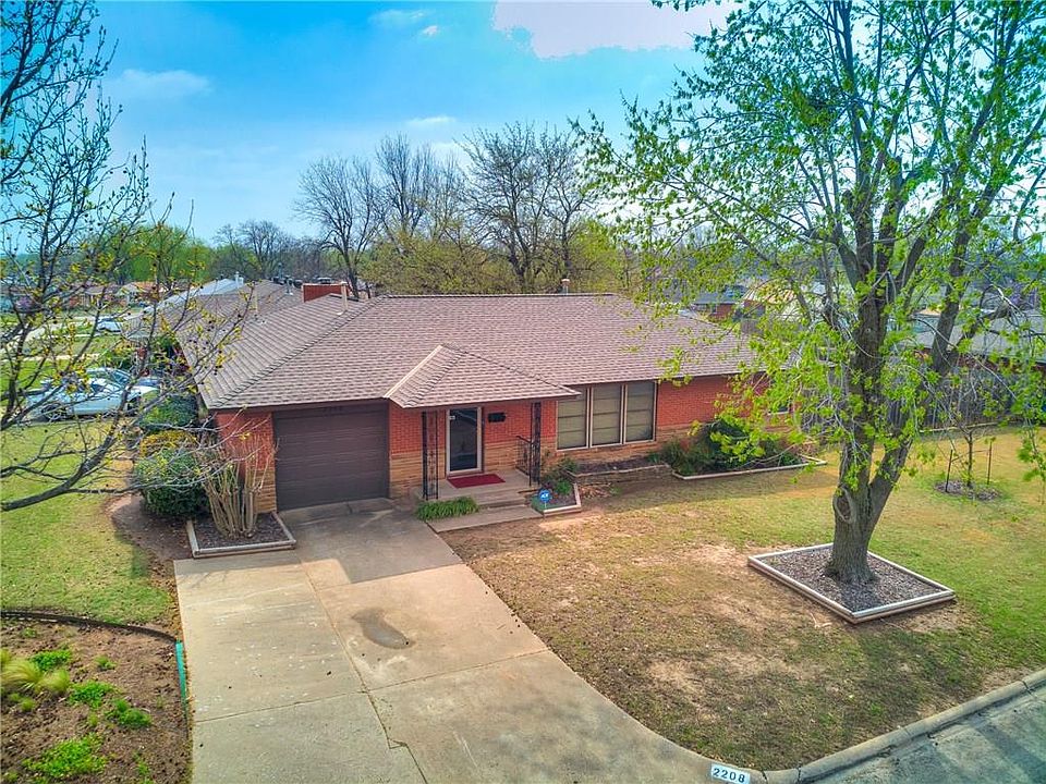 Very well maintained, incredibly clean one owner home less than 4 miles from Tinker AFB. Walk in & immediately notice the clean, plush carpeting in the huge, open living/dining area w/ tons of natural light. Seller says original hardwood floors are most likely under the carpet in this area (look in coat closet to see wood flooring). Think of the possibilities! Walk in to the kitchen & notice all of the cabinet & counter space. Kitchen also has a peek a boo window in to the den which is a picture frame for the cozy fireplace. Den boast a gas fireplace, full bath(shower only), closet and access to back patio. This den could easily be converted to a 4th bed w/ private bath. Second bath has dual vanity and tub/shower combo. Enjoy time in your spacious backyard w/ a nice pergola to shield you from the sun on hot summer days. Microwave, fridge & washing machine will stay. This house has been shown a lot of love over the years & is move in ready w/ a great canvass for future updates!