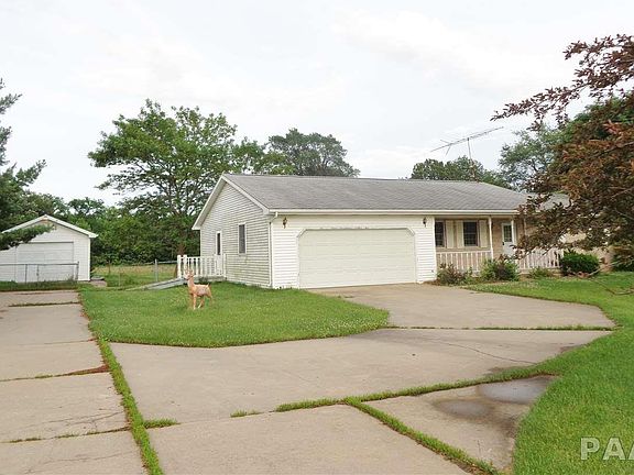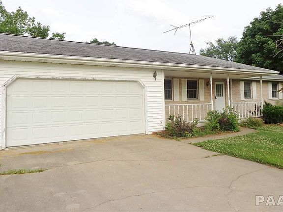 Perfect country living on over 5 acres and still only minutes from city conveniences! This 3 bedroom, 2 bath ranch built in 1991 offers; mostly brick front, large covered porch, 3 car garage(2 car attached plus 1 car detached), extra large kitchen with French doors to oversized deck, main floor laundry, newer A/C, full basement, priced at $174,900 - far lower than Peoria County assessed value and recent appraisal. Just needs some TLC to build equity. Sold AS-IS.