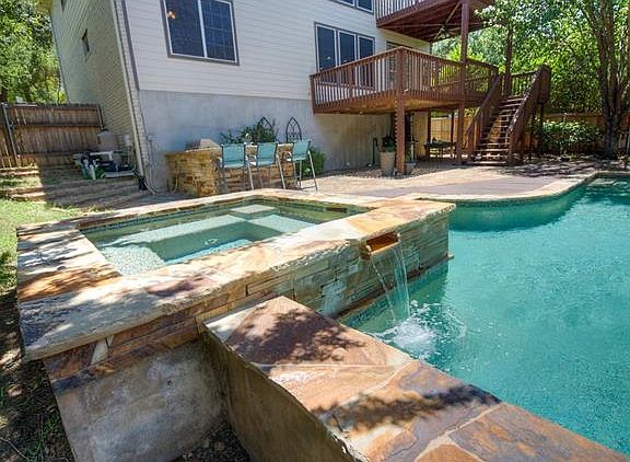 Wonderful home with 4 bedrooms, 3 full baths, family room, game-room in sought after Lake Pointe! This home has a mother-in-law floor plan and cathedral ceilings. The back-yard consists of a beautiful pool and outdoor grill area with deck! Situated in the Lake Travis Independent School District this home is conveniently located near Galleria shopping and restaurants. See agent regarding new flooring/flooring allowance for first floor!